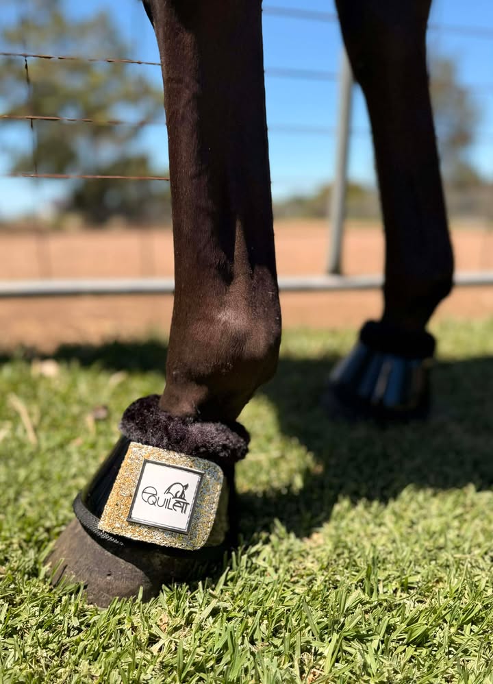 Equilett’s Patent Bell Boots combine superior functionality with refined detailing. The inner layer features shock-absorbing neoprene to shield against overreach injuries, while the glossy patent outer shell offers a sleek, wipe-clean finish. A soft faux fur collar cushions the pastern for added comfort, preventing rubs during extended wear. The contoured fit ensures stability through movement, and the glitter-tab closures add a refined sparkle that stays secure ride after ride.