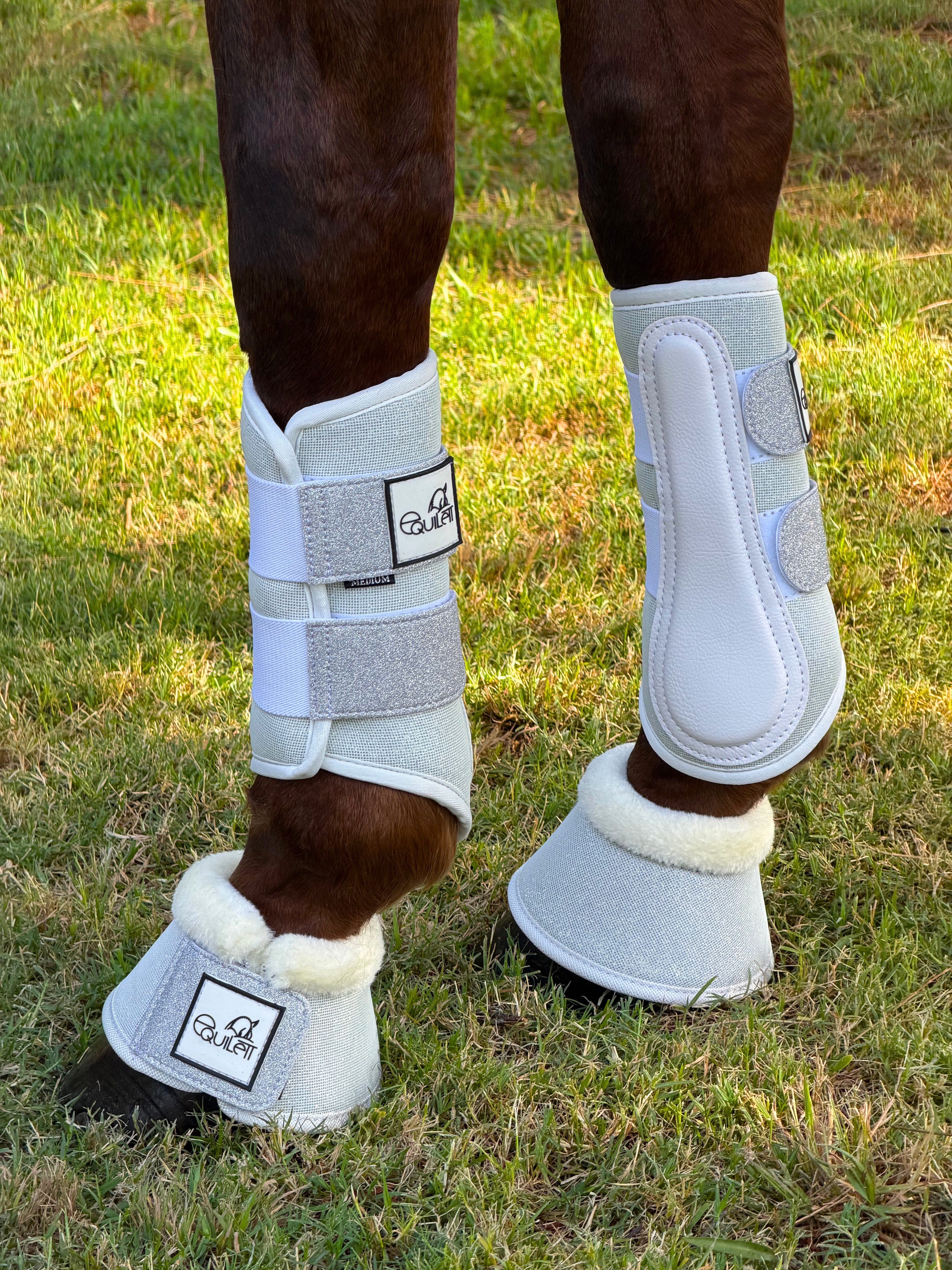 Elevate your horse’s training gear with our Airflow Glitter Mesh Brushing Boot Set. Crafted with a durable glitter mesh outer and supportive airflow design, this set includes matching brushing boots and bell boots for complete protection. Lightweight, stylish, and built for performance.